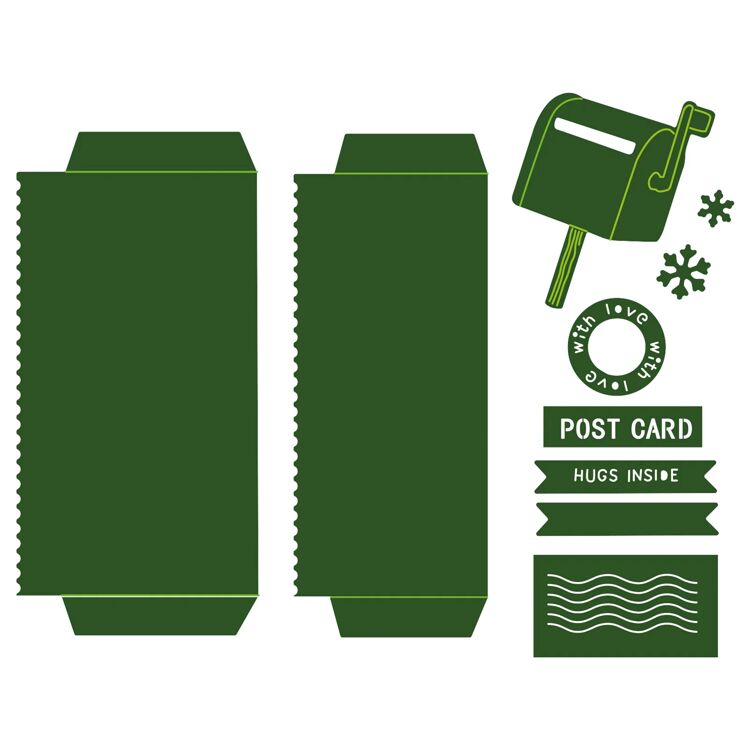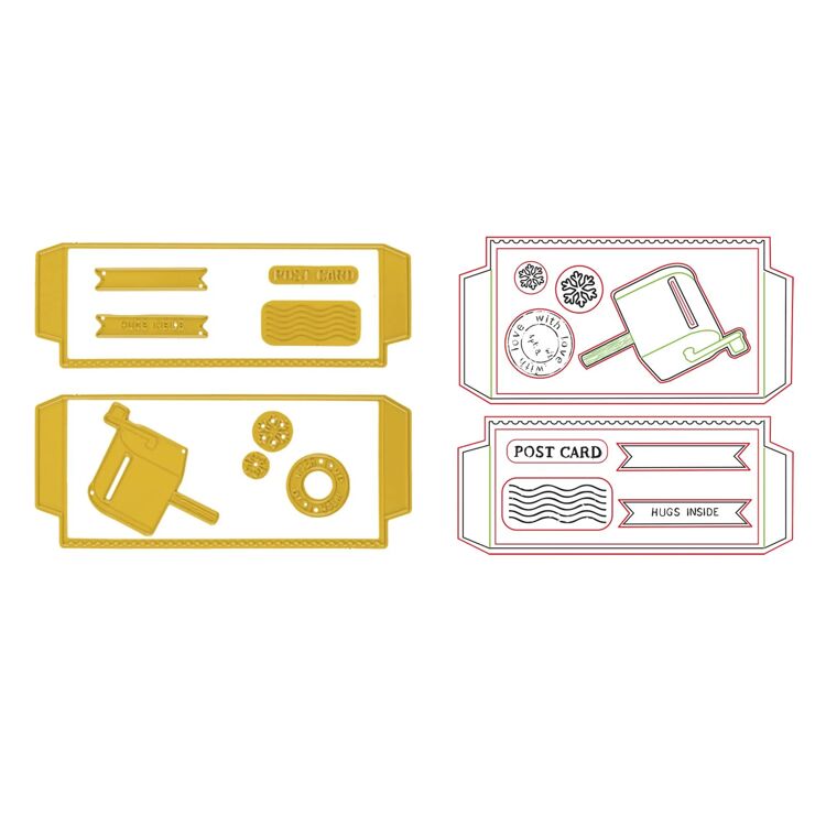 13 snij en embossingmallen. Je kunt mapjes op je kaart ermee maken in breedte 10cm bij hoogte 3,8 en 4,8 cm. Of vakverdeling ervan maken met 3625-0101